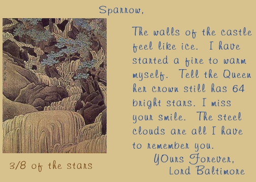 To decode the card, calculate 3/8 of the stars in the Queen's crown.